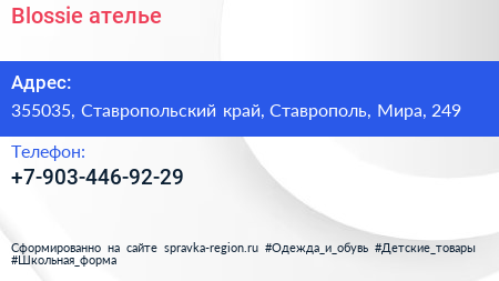 Blossie, ателье по адресу 355035, Ставропольский край, Ставрополь, Мира, 249 в дальнейшем Организация, размещена в следующих категориях: