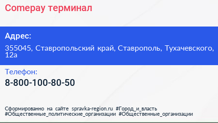 Comepay, терминал по адресу 355045, Ставропольский край, Ставрополь, Тухачевского, 12а в дальнейшем Организация, размещена в следующих категориях: