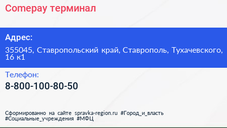 Comepay, терминал по адресу 355045, Ставропольский край, Ставрополь, Тухачевского, 16 к1 в дальнейшем Организация, размещена в следующих категориях: