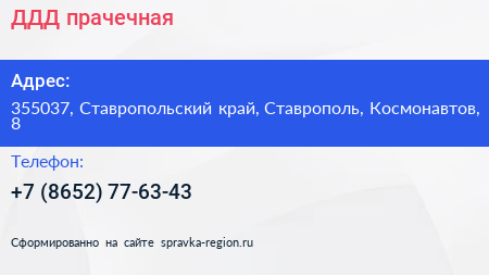 ДДД, прачечная по адресу 355037, Ставропольский край, Ставрополь, Космонавтов, 8 в дальнейшем Организация, размещена в следующих категориях: