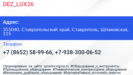 DEZ_LUX26 по адресу 355040, Ставропольский край, Ставрополь, Шпаковская, 115 в дальнейшем Организация, размещена в следующих категориях: