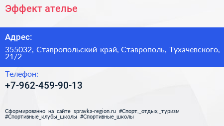 Эффект, ателье по адресу 355032, Ставропольский край, Ставрополь, Тухачевского, 21/2 в дальнейшем Организация, размещена в следующих категориях: