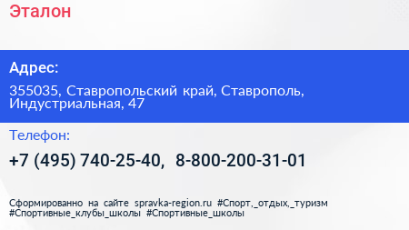 Эталон по адресу 355035, Ставропольский край, Ставрополь, Индустриальная, 47 в дальнейшем Организация, размещена в следующих категориях:
