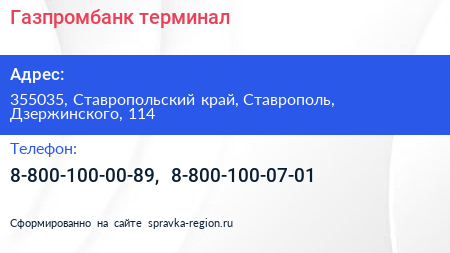 Газпромбанк, терминал по адресу 355035, Ставропольский край, Ставрополь, Дзержинского, 114 в дальнейшем Организация, размещена в следующих категориях: