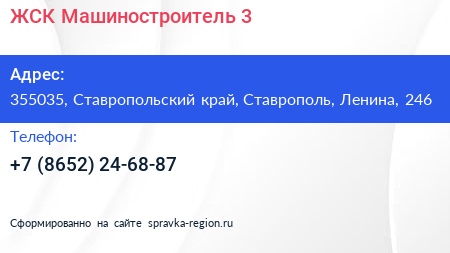 ЖСК Машиностроитель-3 по адресу 355035, Ставропольский край, Ставрополь, Ленина, 246 в дальнейшем Организация, размещена в следующих категориях: