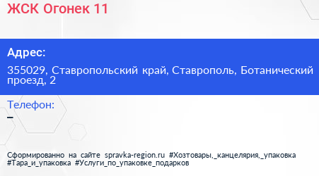 ЖСК Огонек 11 по адресу 355029, Ставропольский край, Ставрополь, Ботанический проезд, 2 в дальнейшем Организация, размещена в следующих категориях: