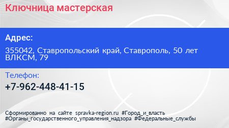 Ключница, мастерская по адресу 355042, Ставропольский край, Ставрополь, 50 лет ВЛКСМ, 79 в дальнейшем Организация, размещена в следующих категориях: