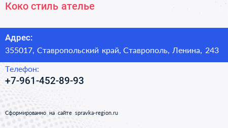 Коко стиль, ателье по адресу 355017, Ставропольский край, Ставрополь, Ленина, 243 в дальнейшем Организация, размещена в следующих категориях:
