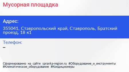 Мусорная площадка по адресу 355041, Ставропольский край, Ставрополь, Братский проезд, 18 к1 в дальнейшем Организация, размещена в следующих категориях: