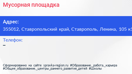 Мусорная площадка по адресу 355012, Ставропольский край, Ставрополь, Ленина, 105 к1 в дальнейшем Организация, размещена в следующих категориях: