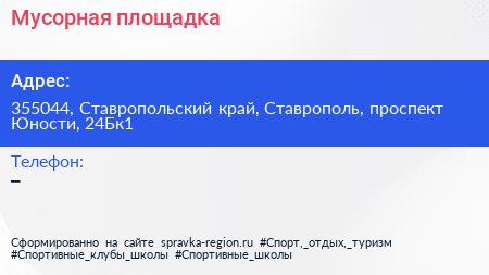 Мусорная площадка по адресу 355044, Ставропольский край, Ставрополь, проспект Юности, 24Бк1 в дальнейшем Организация, размещена в следующих категориях: