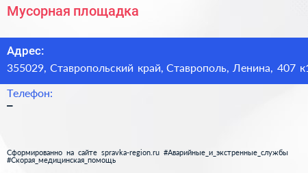 Мусорная площадка по адресу 355029, Ставропольский край, Ставрополь, Ленина, 407 к1 в дальнейшем Организация, размещена в следующих категориях: