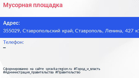 Мусорная площадка по адресу 355029, Ставропольский край, Ставрополь, Ленина, 427 к1 в дальнейшем Организация, размещена в следующих категориях: