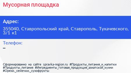 Мусорная площадка по адресу 355040, Ставропольский край, Ставрополь, Тухачевского, 3/1 к1 в дальнейшем Организация, размещена в следующих категориях:
