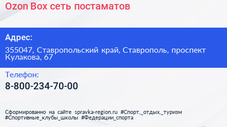 Ozon Box, сеть постаматов по адресу 355047, Ставропольский край, Ставрополь, проспект Кулакова, 67 в дальнейшем Организация, размещена в следующих категориях: