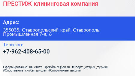 ПРЕСТИЖ, клининговая компания по адресу 355035, Ставропольский край, Ставрополь, Промышленная 7-я, 6 в дальнейшем Организация, размещена в следующих категориях: