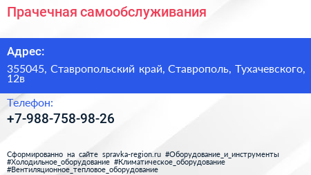 Прачечная самообслуживания по адресу 355045, Ставропольский край, Ставрополь, Тухачевского, 12в в дальнейшем Организация, размещена в следующих категориях: