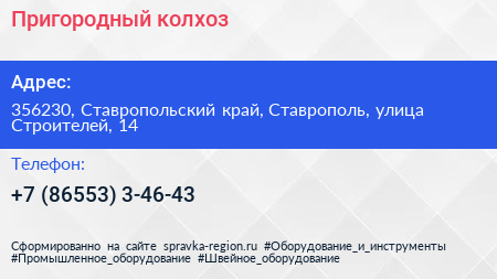 Пригородный, колхоз по адресу 356230, Ставропольский край, Ставрополь, улица Строителей, 14 в дальнейшем Организация, размещена в следующих категориях: