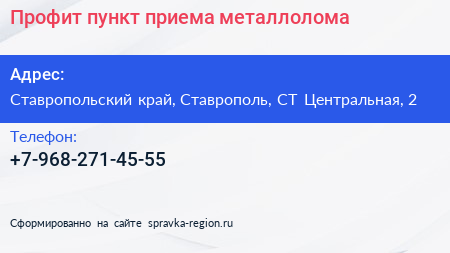 Профит, пункт приема металлолома по адресу Ставропольский край, Ставрополь, СТ Центральная, 2 в дальнейшем Организация, размещена в следующих категориях: