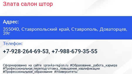Злата, салон штор по адресу 355040, Ставропольский край, Ставрополь, Доваторцев, 39г в дальнейшем Организация, размещена в следующих категориях: