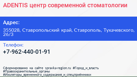 ADENTIS, центр современной стоматологии по адресу 355028, Ставропольский край, Ставрополь, Тухачевского, 26/3 в дальнейшем Организация, размещена в следующих категориях: