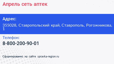 Апрель, сеть аптек по адресу 355028, Ставропольский край, Ставрополь, Рогожникова, 1 в дальнейшем Организация, размещена в следующих категориях: