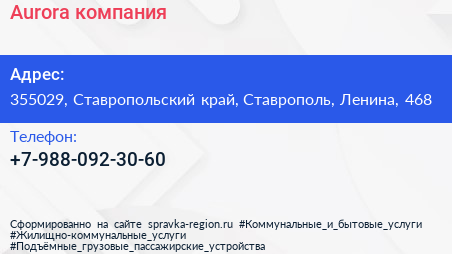 Aurora, компания по адресу 355029, Ставропольский край, Ставрополь, Ленина, 468 в дальнейшем Организация, размещена в следующих категориях: