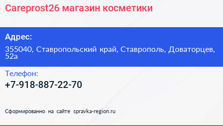 Careprost26, магазин косметики по адресу 355040, Ставропольский край, Ставрополь, Доваторцев, 52а в дальнейшем Организация, размещена в следующих категориях: