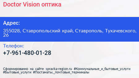 Doctor Vision, оптика по адресу 355028, Ставропольский край, Ставрополь, Тухачевского, 26 в дальнейшем Организация, размещена в следующих категориях: