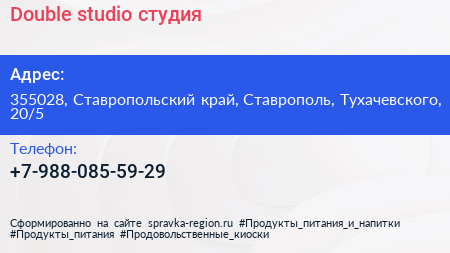 Double studio, студия по адресу 355028, Ставропольский край, Ставрополь, Тухачевского, 20/5 в дальнейшем Организация, размещена в следующих категориях: