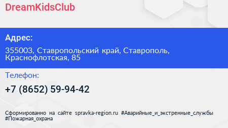 DreamKidsClub по адресу 355003, Ставропольский край, Ставрополь, Краснофлотская, 85 в дальнейшем Организация, размещена в следующих категориях: