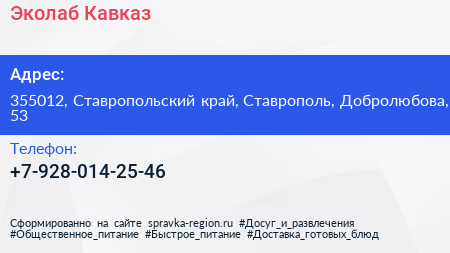Эколаб-Кавказ по адресу 355012, Ставропольский край, Ставрополь, Добролюбова, 53 в дальнейшем Организация, размещена в следующих категориях: