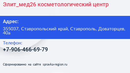 Элит_мед26, косметологический центр по адресу 355037, Ставропольский край, Ставрополь, Доваторцев, 40а в дальнейшем Организация, размещена в следующих категориях: