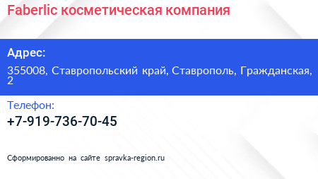 Faberlic, косметическая компания по адресу 355008, Ставропольский край, Ставрополь, Гражданская, 2 в дальнейшем Организация, размещена в следующих категориях: