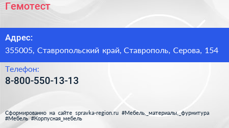Гемотест по адресу 355005, Ставропольский край, Ставрополь, Серова, 154 в дальнейшем Организация, размещена в следующих категориях: