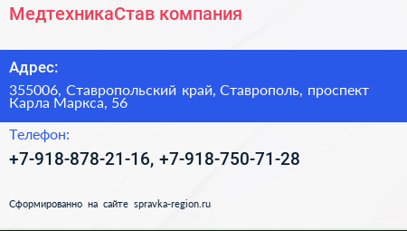 МедтехникаСтав, компания по адресу 355006, Ставропольский край, Ставрополь, проспект Карла Маркса, 56 в дальнейшем Организация, размещена в следующих категориях: