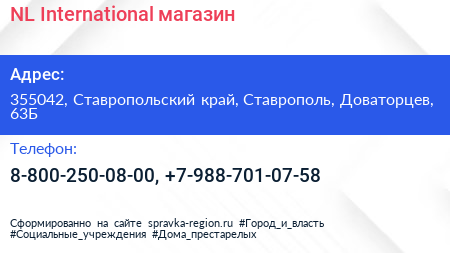 NL International, магазин по адресу 355042, Ставропольский край, Ставрополь, Доваторцев, 63Б в дальнейшем Организация, размещена в следующих категориях: