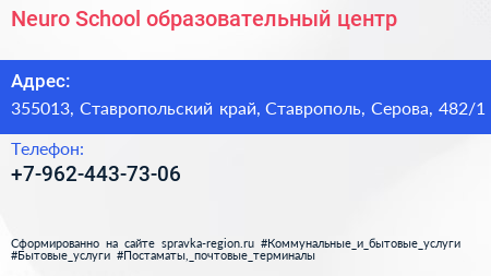 Neuro School, образовательный центр по адресу 355013, Ставропольский край, Ставрополь, Серова, 482/1 в дальнейшем Организация, размещена в следующих категориях: