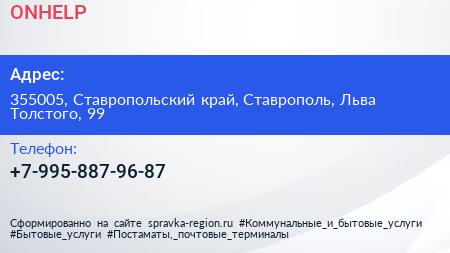 ONHELP по адресу 355005, Ставропольский край, Ставрополь, Льва Толстого, 99 в дальнейшем Организация, размещена в следующих категориях: