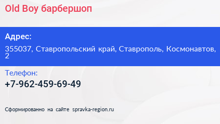 Old Boy, барбершоп по адресу 355037, Ставропольский край, Ставрополь, Космонавтов, 2 в дальнейшем Организация, размещена в следующих категориях:
