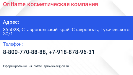 Oriflame, косметическая компания по адресу 355028, Ставропольский край, Ставрополь, Тухачевского, 30/1 в дальнейшем Организация, размещена в следующих категориях: