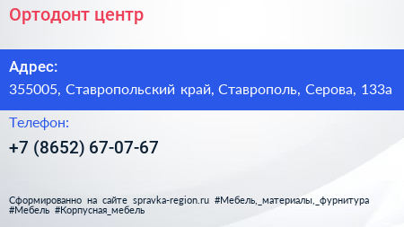 Ортодонт-центр по адресу 355005, Ставропольский край, Ставрополь, Серова, 133а в дальнейшем Организация, размещена в следующих категориях: