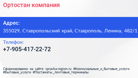 Ортостан, компания по адресу 355029, Ставропольский край, Ставрополь, Ленина, 482/1 в дальнейшем Организация, размещена в следующих категориях: