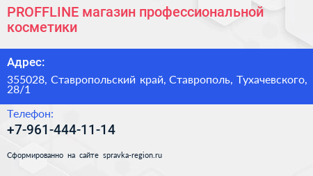 PROFFLINE, магазин профессиональной косметики по адресу 355028, Ставропольский край, Ставрополь, Тухачевского, 28/1 в дальнейшем Организация, размещена в следующих категориях: