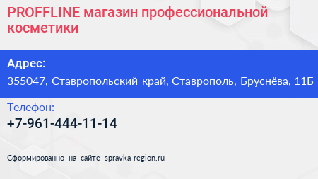 PROFFLINE, магазин профессиональной косметики по адресу 355047, Ставропольский край, Ставрополь, Бруснёва, 11Б в дальнейшем Организация, размещена в следующих категориях:
