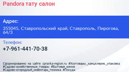 Pandora, тату-салон по адресу 355045, Ставропольский край, Ставрополь, Пирогова, 64/3 в дальнейшем Организация, размещена в следующих категориях: