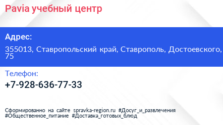 Pavia, учебный центр по адресу 355013, Ставропольский край, Ставрополь, Достоевского, 75 в дальнейшем Организация, размещена в следующих категориях: