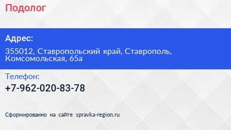 Подолог по адресу 355012, Ставропольский край, Ставрополь, Комсомольская, 65а в дальнейшем Организация, размещена в следующих категориях: