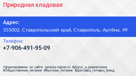 Природная кладовая по адресу 355002, Ставропольский край, Ставрополь, Артёма, 49 в дальнейшем Организация, размещена в следующих категориях: