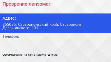 Прозрение, линзомат по адресу 355035, Ставропольский край, Ставрополь, Дзержинского, 131 в дальнейшем Организация, размещена в следующих категориях: